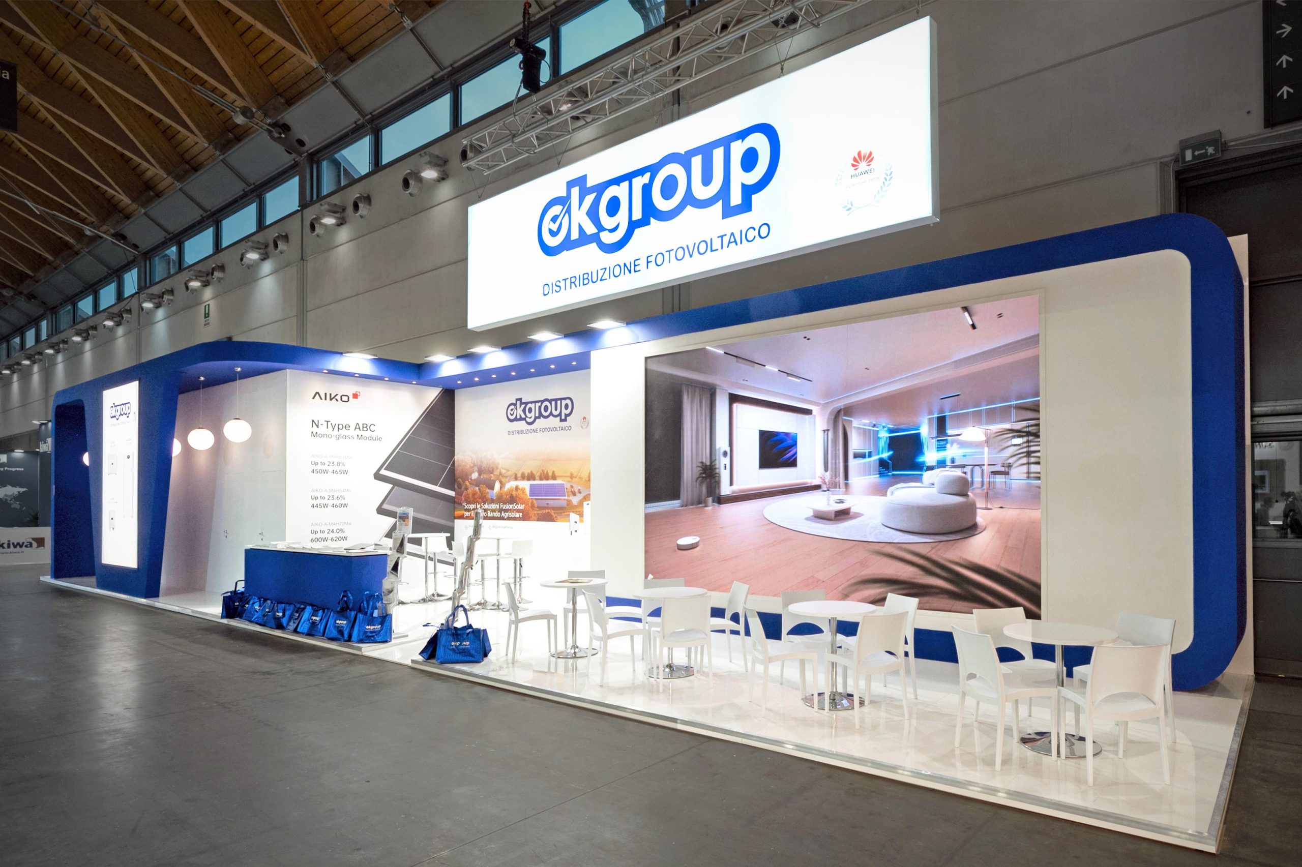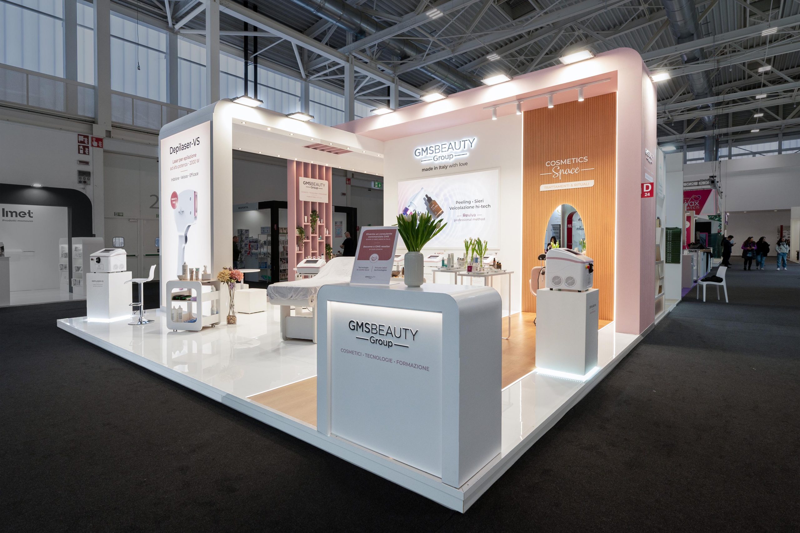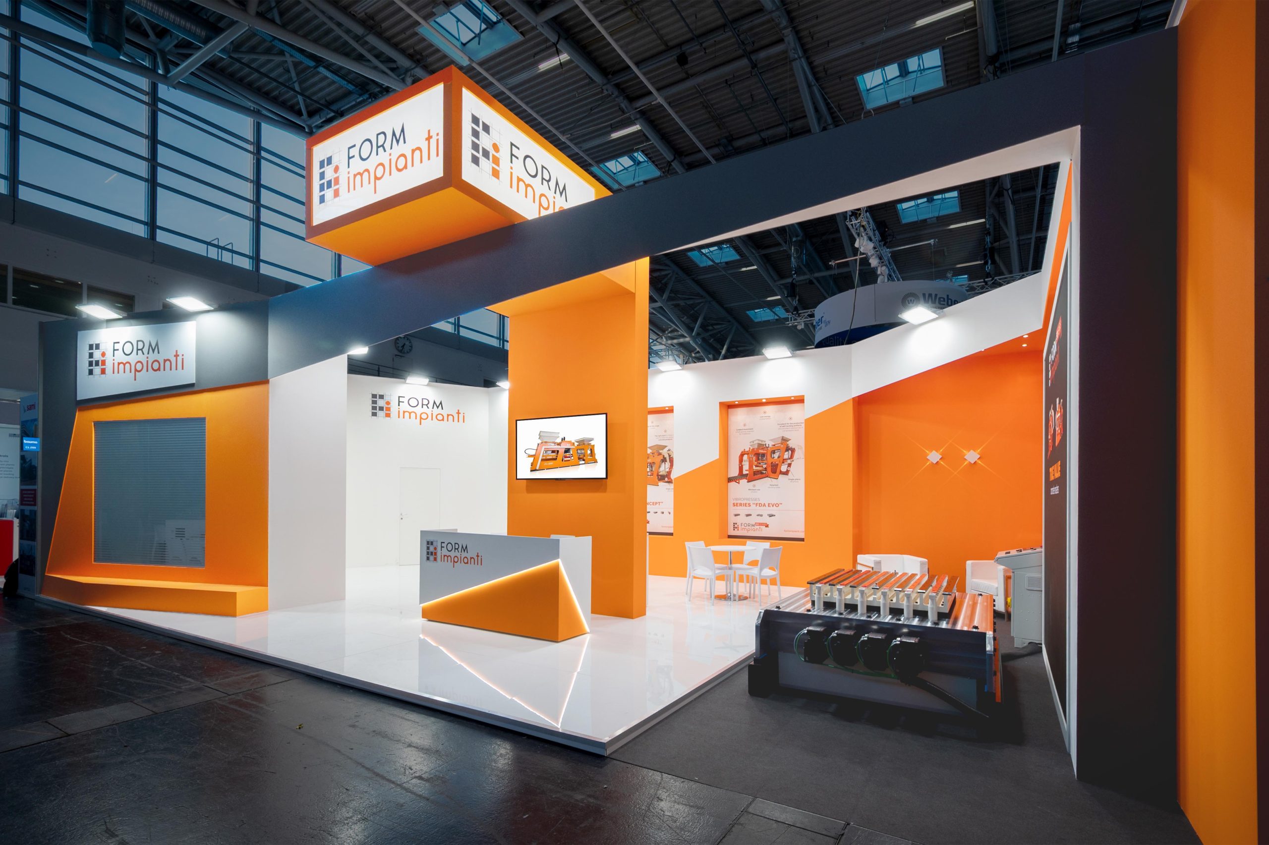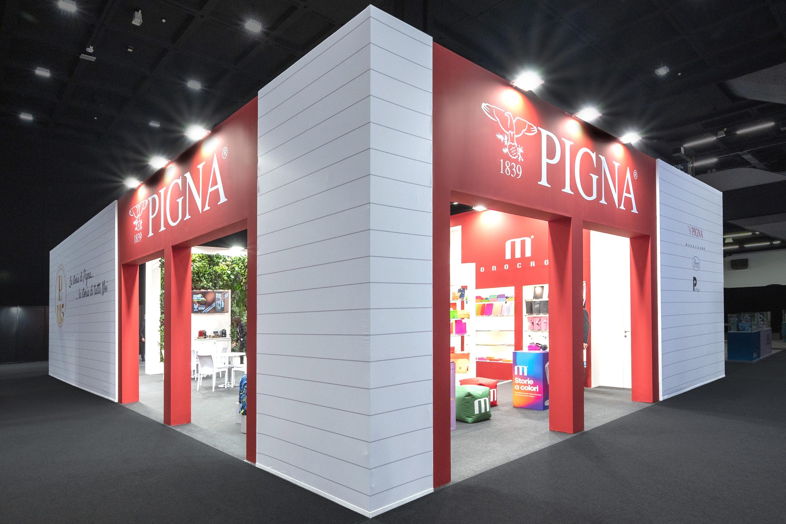 Progettazione realizzazione e allestimento stand fieristici personalizzati a ciclo completo con falegnameria, magazzini e studio grafico interni.