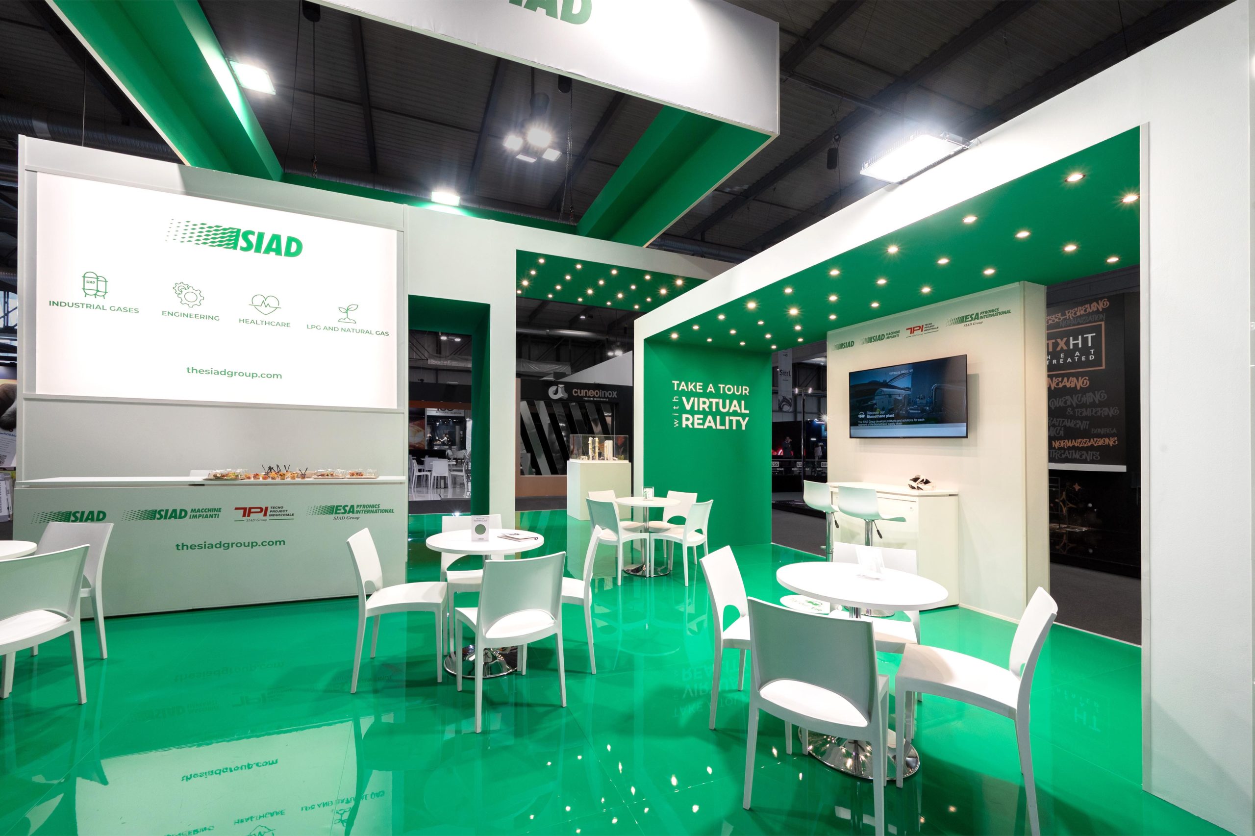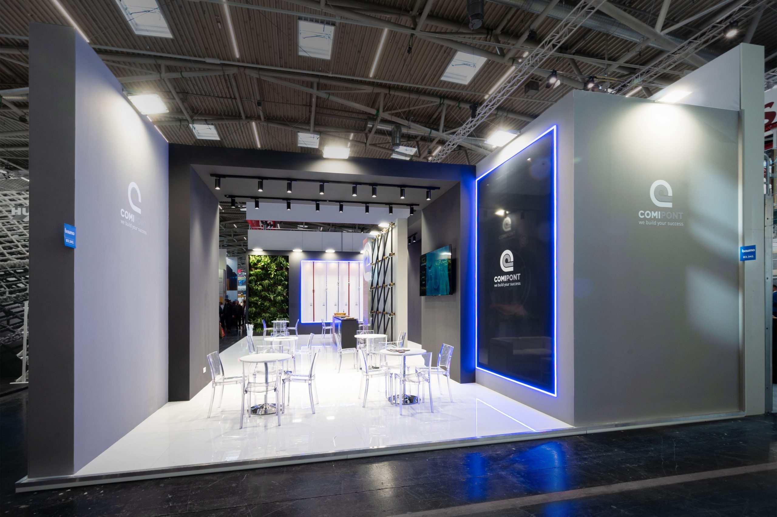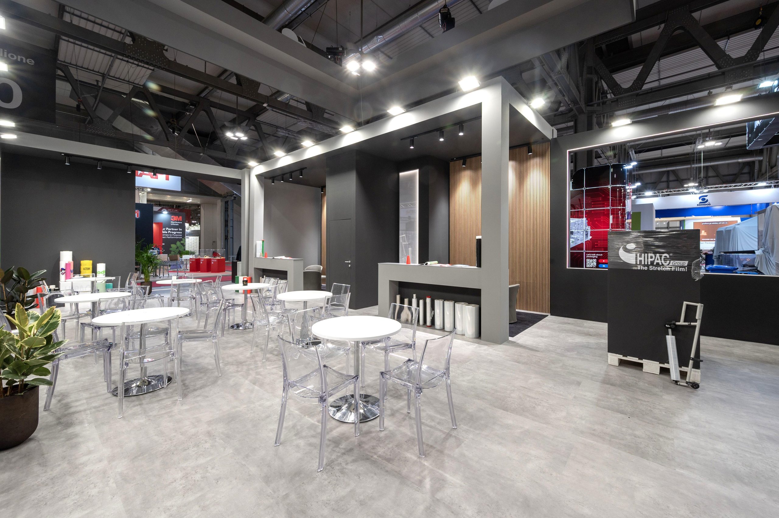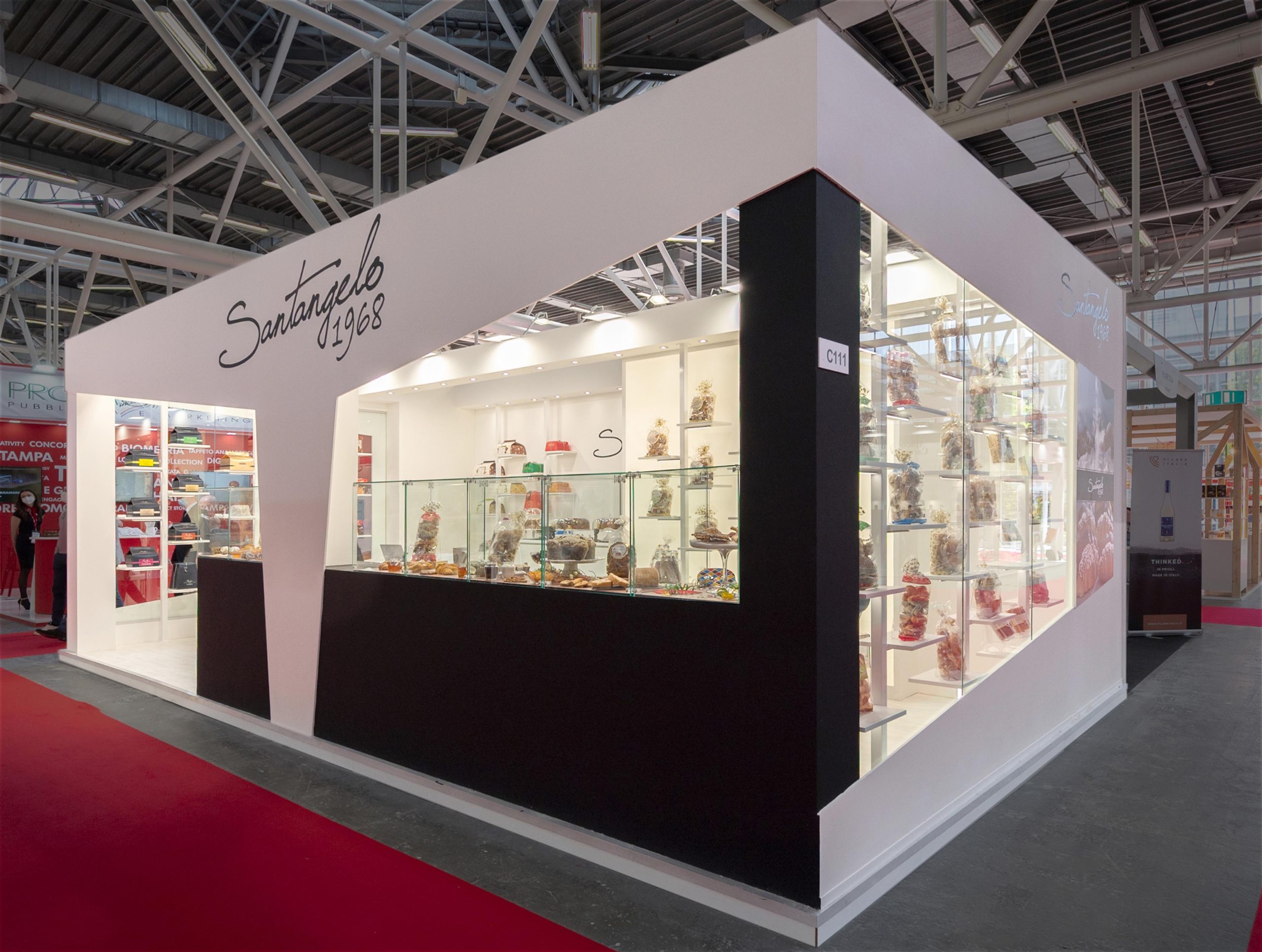 Progettazione realizzazione e allestimento stand fieristici personalizzati a ciclo completo con falegnameria, magazzini e studio grafico interni.