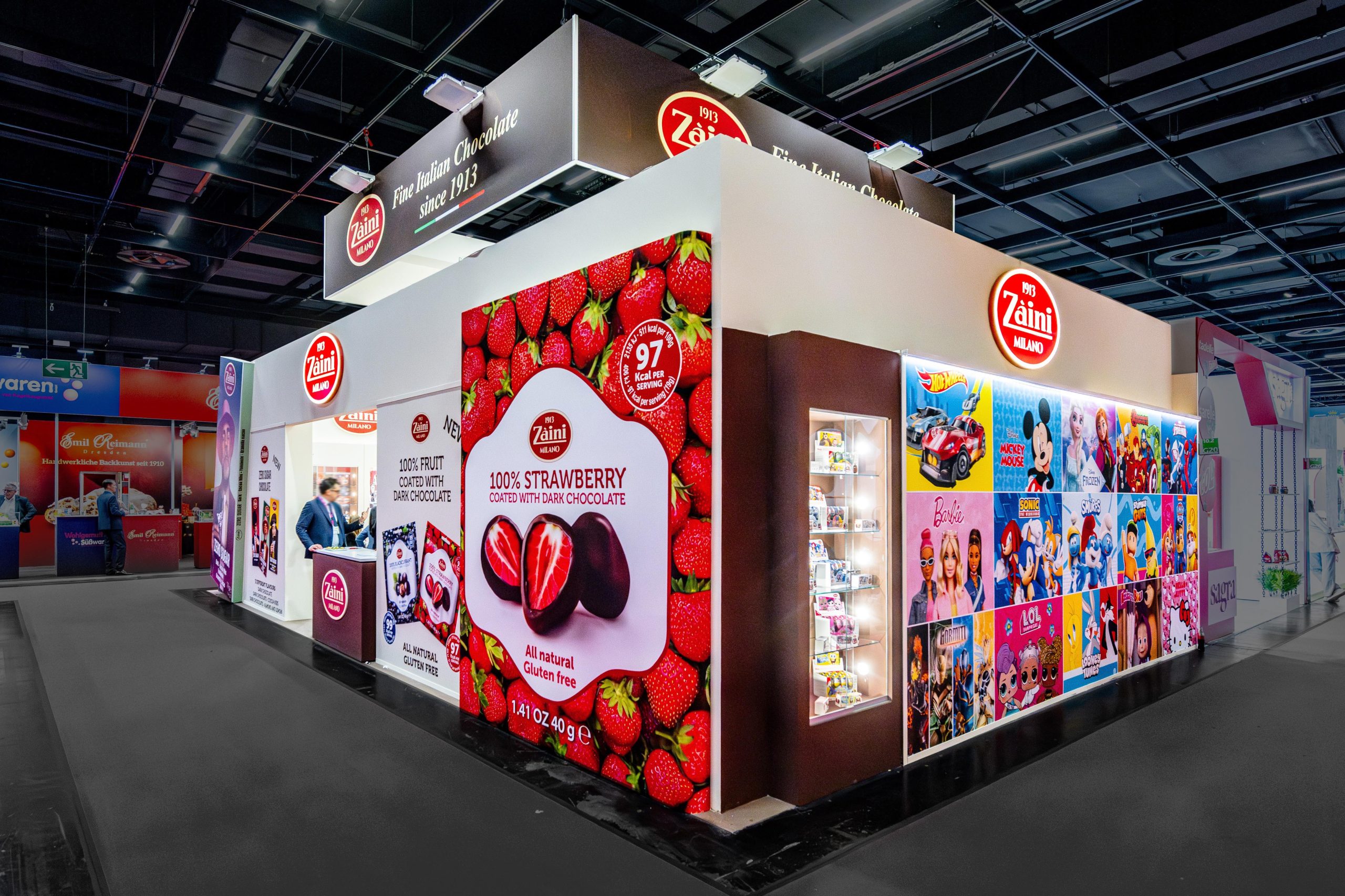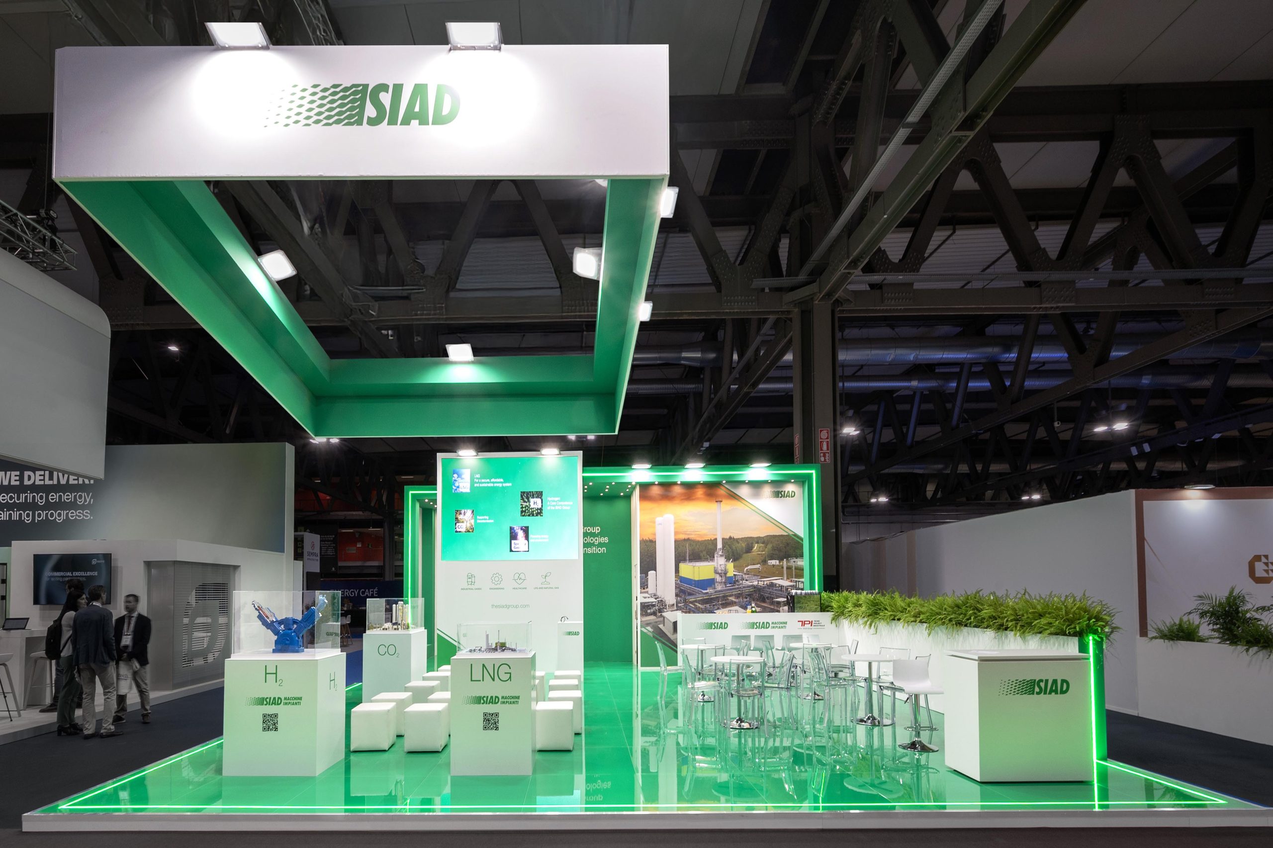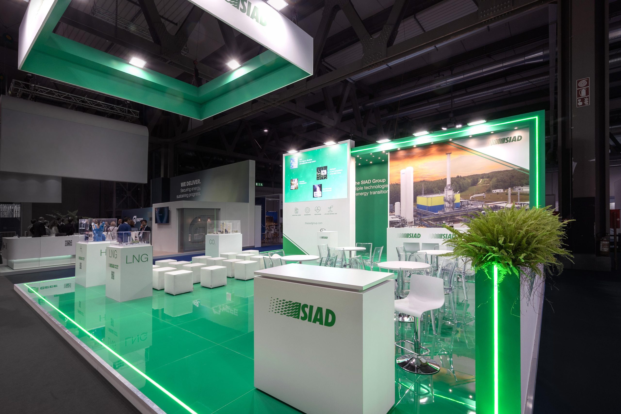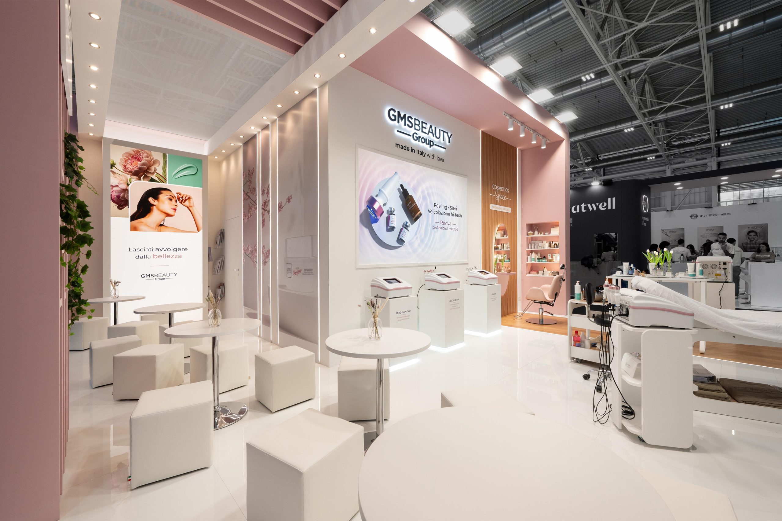 Progettazione realizzazione e allestimento stand fieristici personalizzati a ciclo completo con falegnameria, magazzini e studio grafico interni.